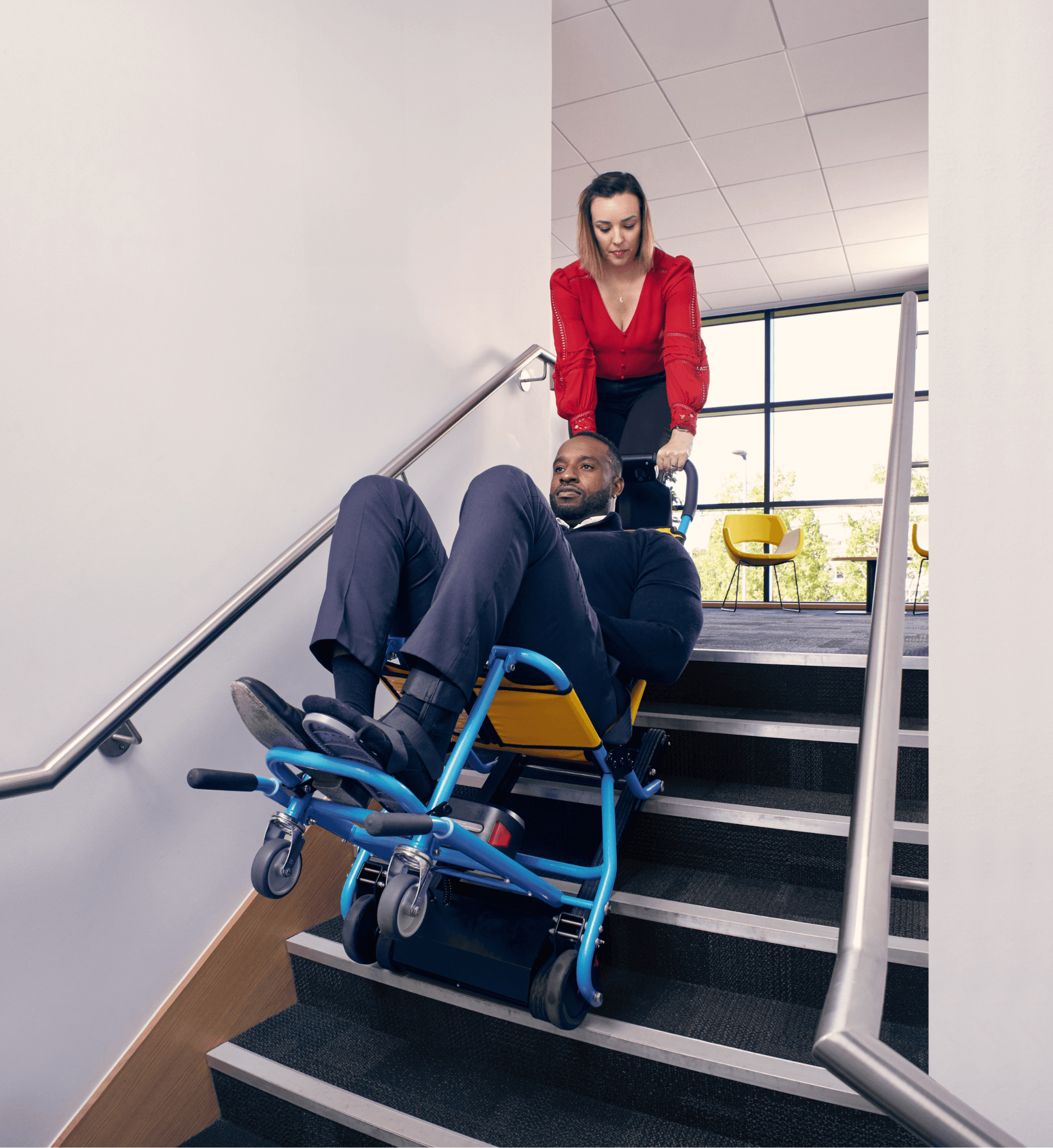 To support our customers, we offer complimentary evacuation assessments conducted by our nationwide team of specialists. These experts assess the specific needs of employees, existing PEEPs (Personal Emergency Evacuation Plans), review GEEPS (General Emergency Evacuation Plans), building requirements and stair configuration  – all of which help determine the most suitable Evac+Chair model for your needs.