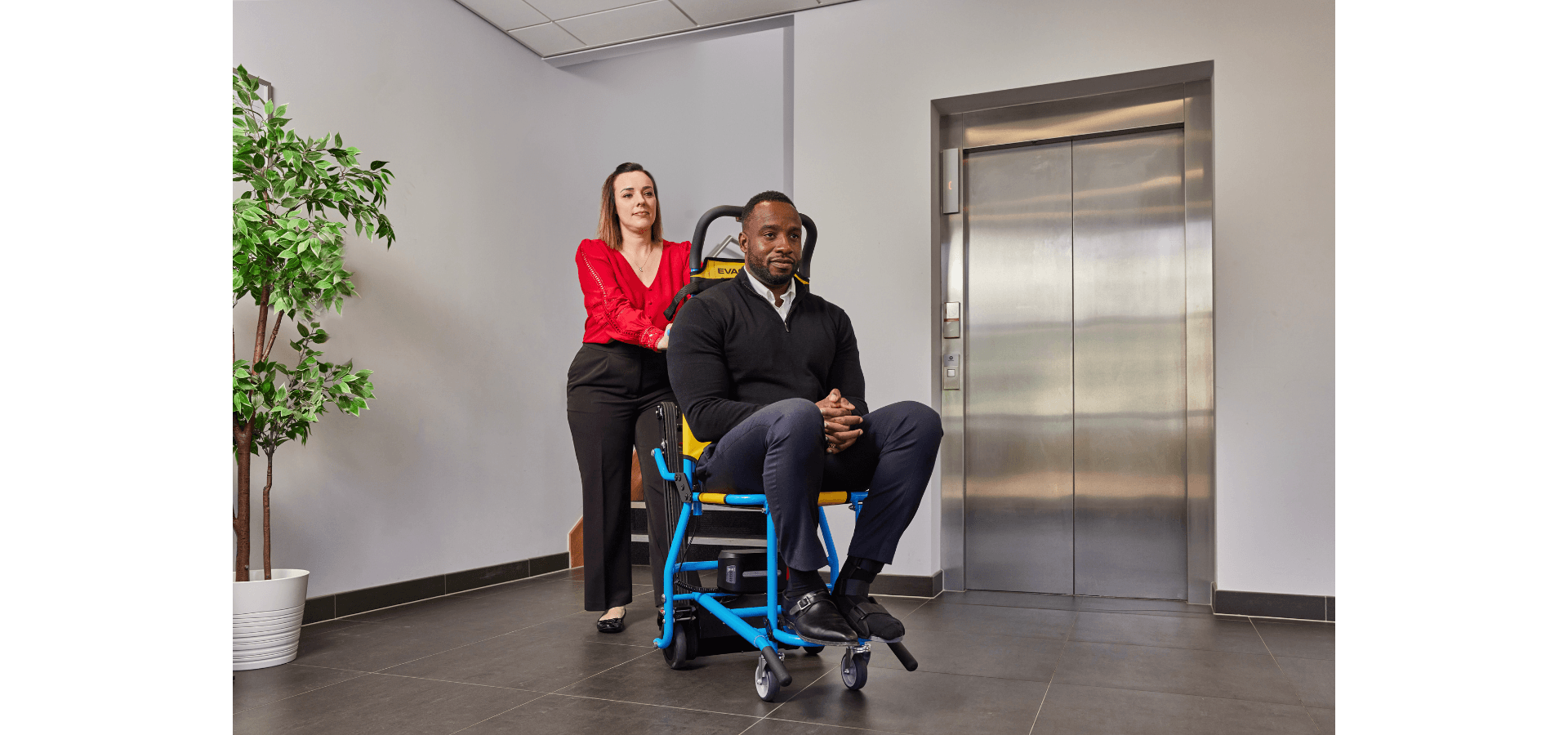 To ensure you select the most suitable Evac+Chair for your organisation, book a complimentary Evacuation Assessment conducted by our nationwide team of specialists. Alternatively, use our Evac Xpert™ tool for a quick and easy way to choose your evacuation chair. Where multiple staircases exist within your organisation, we strongly recommend a complimentary Evacuation Assessment to guarantee the right Evac+Chair at every stairwell – ensuring maximum safety, swift evacuation and peace of mind for your entire organisation.