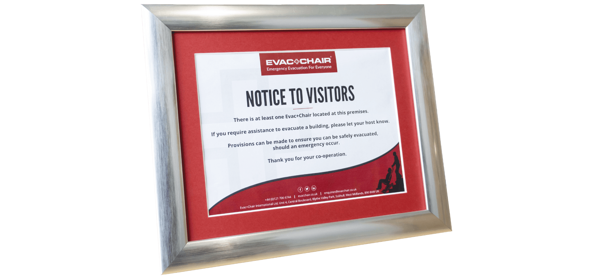 Let visitors know that an Evac+Chair is available onsite, providing peace of mind that a safe evacuation is possible in an emergency.
