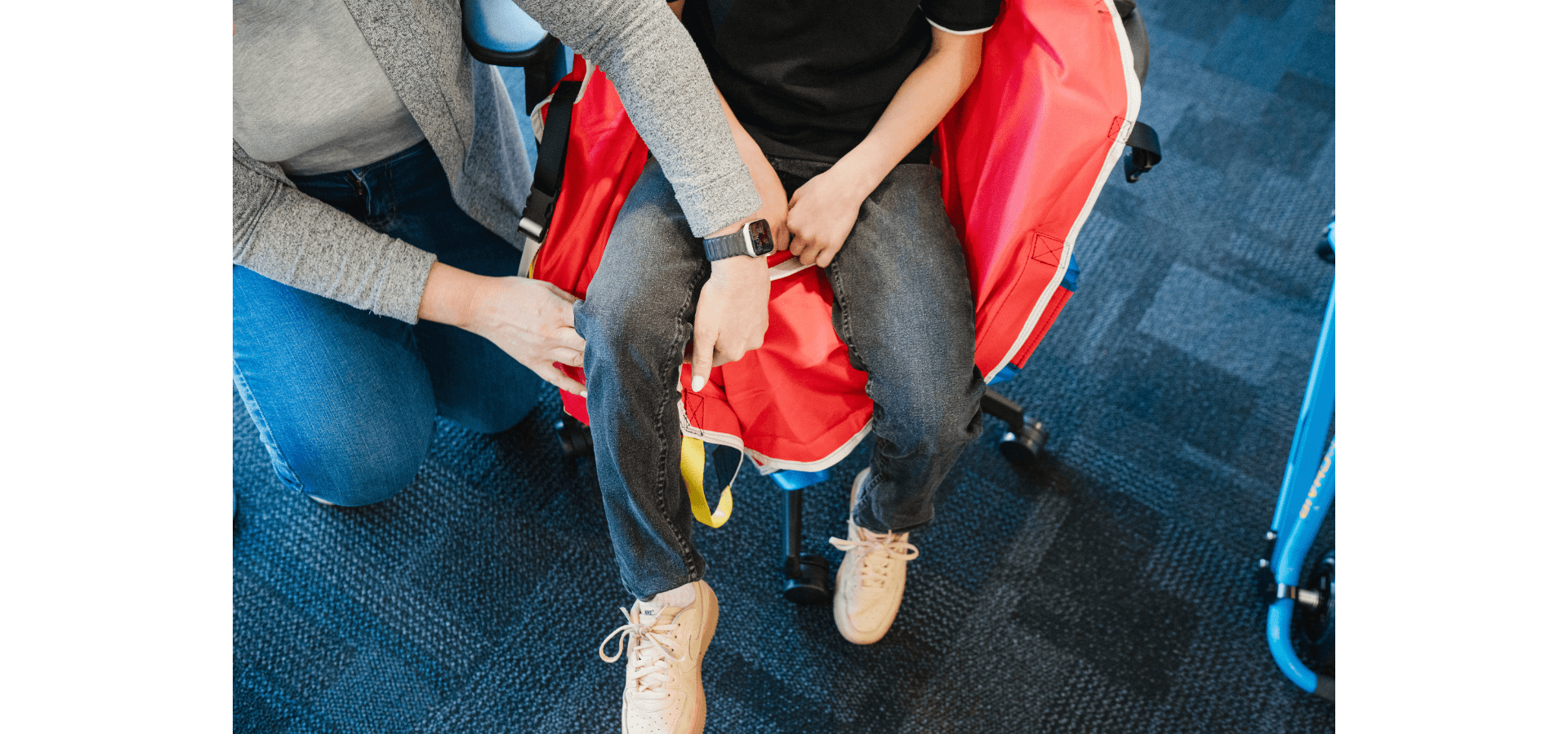 The ProMove child sling provides a safe and comfortable means of manually transferring a mobility impaired individual, from one location to another and can be operated by two or more persons. Once the sling is in position, it cocoons the individual, eliminating pressure and reducing the risk of injury, whilst enabling a dignified, safe transfer.